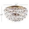 We love the arbor-inspired design of this stunning flush mount. The shallow drop makes it suitable for smaller spaces. A refreshing addition in the bathroom or bedroom, the gold finish and crystal details add elegance and style.