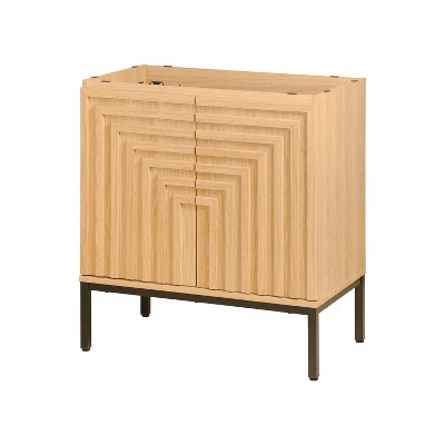 JONATHAN Y Juhl 30 in. W x 18 in. D x 33 in. H Chevron-Front Modern Minimalist 2-Shelf Bath Vanity Cabinet Only (Sink Basin Not Included), Oak