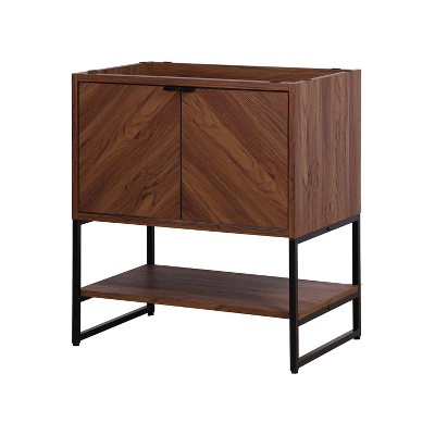 JONATHAN Y Juhl 30 in. W x 18 in. D x 33 in. H Chevron-Front Modern Minimalist 2-Shelf Bath Vanity Cabinet Only Sink Basin Not Included, Walnut