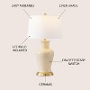 Designed from finial to plus with every element considered for timeless appeal, this lamp's tasteful urn-inspired profile offers a statuesque ambiance. Ceramic with a glazed finish complements a base made from brushed brass and matching accents. A cotton linen shade with a slightly tapered silhouette offers a soft finish.
