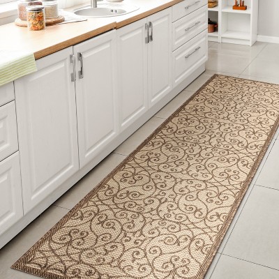 JONATHAN Y Madrid Vintage Filigree Textured Weave Beige/Brown 9 ft. Square Indoor/Outdoor Area Rug, Non-Shedding, Easy-Clean
