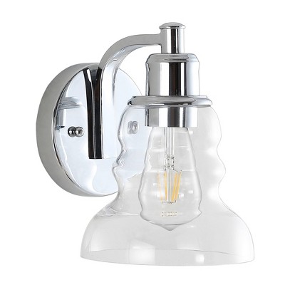 JONATHAN Y Marion 36.5" 5-Light Hurricane Metal/Seeded Glass LED Vanity Light Chrome: ETL Listed, 2700K, Glass Shades