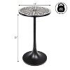 - The resin top has a two-tone vine design in black and white, and the pedestal base is semi-glossy black