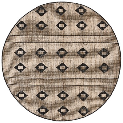 JONATHAN Y Ourika Moroccan Geometric Textured Weave Natural/Black 6 ft. Round Indoor/Outdoor Area Rug, Non-Shedding, Easy-Clean