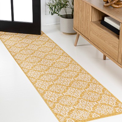 JONATHAN Y Sabine Traditional Farmhouse Bold Gingham Yellow/Cream 2 ft. x 8 ft. Indoor/Outdoor Runner Rug, Non-Shedding, Easy-Clean