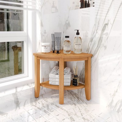 This classic spa stool fits in a walk-in shower and doubles as extra seating or a stylish display for towels, books, or dcor, with an elegant design that elevates any space. The traditional slatted design is made from water-resistant acacia wood with a protective oil-stain finish. This versatile stool works as a comfortable seating for your shower, bathroom or bedroom.