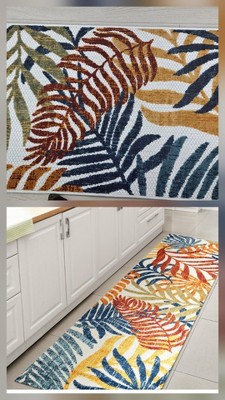 JONATHAN Y Tropics Palm Leaves Cream/Orange 8 ft. x 10 ft. Indoor/Outdoor Area Rug, Non-Shedding, Easy-Clean, Durable Synthetic Fibers