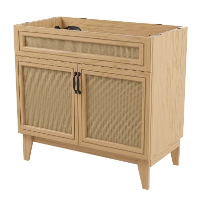 JONATHAN Y VAN1007B Calandre 36 in. W x 18 in. D x 33 in. H Thin Linear Slat Modern 2-Shelf Bath Vanity Cabinet Only Sink Basin not Included,Walnut