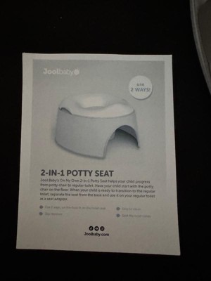 Jool Baby’s On My Own 2-in-1 Potty Seat helps your child progress from potty chair to regular toilet. Have your child start with the potty chair on the floor. When your child is ready to transition to the regular toilet, separate the seat from the base and use it on your regular toilet as a seat adaptor.