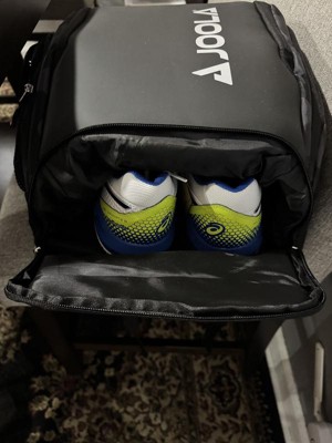 Shoe storage compartment is nice. Lots of space to store paddles, balls, and clothes. Materials used for the bag seem a little thin and cheap.
