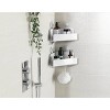 This set of two corner shower shelves take the hassle out of shower storage. They’re large enough to hold all your soap and shampoo bottles and feature hooks for razors, sponges and flannels. Both shelves lift off their fixing brackets for easy cleaning and they’re quick and simple to install using the powerful, super-grip suction cups. This also means they’re fully repositionable without damaging your wall or tiles. Wash and dry by hand.
