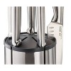 - Rotating knife block features vertical slots for easy access and has a non-slip base
