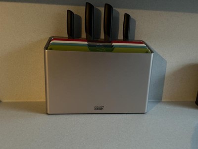 Excellent product, sits very neatly on the worktop especially with the knives in the container. The knives are good quality. Can't fault the service arrived very quickly. We bought these boards about 10 years ago and wanted an upgrade we were not disappointed.