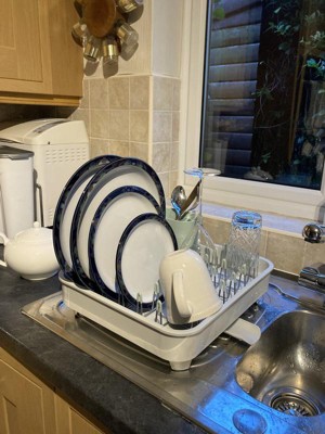 This dish drainer is *perfect* for our needs. It is neat, expands as needed, looks tidy and unobtrusive, and we love the colour. The drainer is a brilliant idea. It is also good to know that it will be easy to clean.