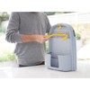 Compact ironing boards are a great option if you have limited storage space or just want to quickly iron one or two items. But this condensed board takes ironing convenience to whole new level with its innovative design. For a start, it folds neatly in half and comes with its own hanging hook that can be mounted onto a wall or door, making it really compact and easy to store. It also features a special compartment for storing your iron, which saves valuable space elsewhere and keeps everything you need for this household chore together in one place. Set-up is fast and easy too, with its quick release locking toggle and folding legs with non-slip feet. Once open, it has a generous ironing surface with corners perfectly shaped for shirts, trousers, dresses and more. It comes with an easy-change, perfect-fit cover comprising a 100% cotton top-layer and a thick padded felt underlay for super-smooth ironing. Replacement covers are also available. Ironing surface 90 x 33 cm (35.4 x 13 inches). Frame guaranteed for 5 years against manufacturing defects.