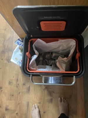[This review was collected as part of a promotion.] Stylish looking waste bin and fits into our apartment. Easy to empty and compactor lessens the treks to the bin storage. No odours from bin.