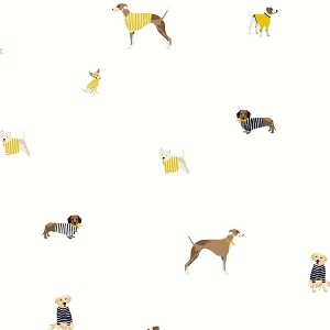 A full roll of this product is 20.5 inches wide and 396 inches long. A full roll can cover up to 56 square feet depending on the design match and pattern repeat. A sample of this product is 8 inches by 11 inches. What’s not to love about a mixture of four legged friends in Joules’ iconic Harbour Tops? Add this wallpaper to any room in the home for a homely and warm welcome. Tones of blue and yellow sit upon a crème background to create this charming design that is sure to brighten your day. Offers a smooth, untextured finish. Offset match with a 28.9 inch pattern repeat.