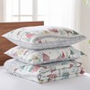 [This review was collected as part of a promotion.] I absolutely love this quilt and it’s vintage pattern for the Holidays. It’s also reversible so you can flip and just have the snowflakes on grey background after the holidays. I love the shams which are easy to get pillows in! Love this quilt and sham set!