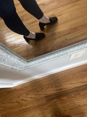 [This review was collected as part of a promotion.] Its a bit of a higher heel than I normally wear but they are comfortable! And I walk around a country club all day long for work. Ive worn with tights and skirt, and with leggings & a blazer. Im a size 8 regular. Love these!