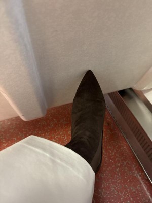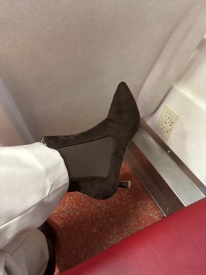 [This review was collected as part of a promotion.] I love the dark brown color of the boots and the little pointed heel .