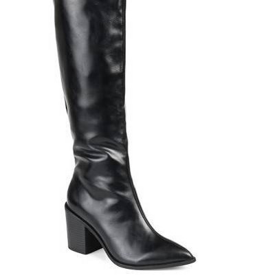 Embrace your country-chic side in the Daria by Journee Collection. This wide-calf design is detailed with pointed-toe and vegan leather uppers topped with whipstitch details. A chunky block heel an easy zipper entry and a 4 mm � insole finish the design for a comfortable fit. At Journee Collection our boot styles will have your outfit looking even better than before. They will give you that finishing touch that will have your outfit looking straight out of a magazine.