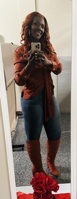 The Kyllie wide-calf boot is extravagant and perfect for your fall and winter events. This boot features a soft faux suede material an almond toe a wide calf and a tall chunky heel. The inside zipper helps with ease of access and the knee-high design is slimming and fitted. The unique decorate detail on the outside of the boot creates a beautiful refreshing design. At Journee Collection our boot styles will have your outfit looking even better than before. They will give you that finishing touch that will have your outfit looking straight out of a magazine.