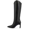 Introducing the Rehela boot by Journee, the perfect blend of elegance and comfort. Made with a wide-width footbed and wide-calf, they are crafted with faux leather, and these boots feature a stylish stiletto heel and pointed-toe design, adding sophistication to any outfit. The 4 mm Journee Comfort System Insole ensures a cushioned step, while the pull-on style and center seam detail offer convenience and a sleek look. Step out in confidence with the Rehela boot, a must-have for fall.