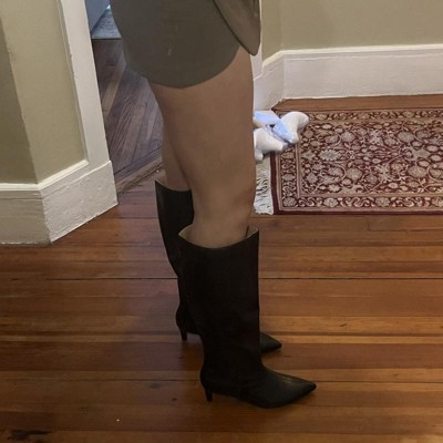 [This review was collected as part of a promotion.] These boots were exactly what I was looking for! Im 5’10” , so i wanted a kitten heel with a pointed toe and not hugging my calves. But I ended up sending these back for 2 reasons: the wide calf was slightly too wide for me. If the shaft was slightly shorter, maybe it wouldn't have looked so wide. The deal breaker was the interior of the boot. Its not black - its a tan, spongey material which is very visible (see photo) and looked cheap imo. Had the interior been black i probably would have kept them! If you have average sized calves, my advice is to go for the regular calf fit! They were sold out by the time i was returning these ones