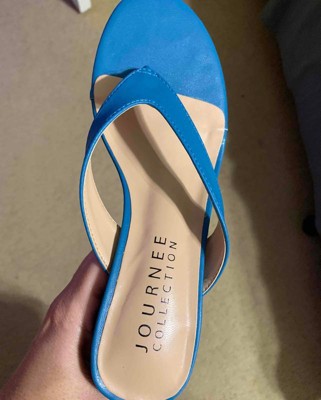 A summer staple with a twist, the Alika by Journee. This retro sandal features flip-flop straps made with soft vegan leather. A padded footbed and a covered block heel add a comfortable lift. At Journee, our pump styles will let you go from a fun night out with the girls to kicking back and relaxing at the end of the night without any trouble.