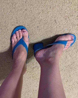 [This review was collected as part of a promotion.] I tried on the size 6 of these shoes and they fit great, very true to size. They are made very well and are very comfortable. I think they’d make it on my feet all day without causing any discomfort. I love the look of them, and the blue color is very pretty! The flip flop straps are perfect and don’t cause any irritation on the inside of my foot which can sometimes happen. This item Felt true to size and the width Felt true to width. I received an incentive to write this review.