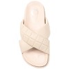 Summer style made easy. The Aveena by Journee is an effortless slide detailed with a padded footbed. Puffed quilted straps made with vegan leather top the design for a retro vibe. At Journee, our sandal styles are going to be perfect for any occasion. Whether that be a formal, business, or casual dress, these sandals will be a perfect match.