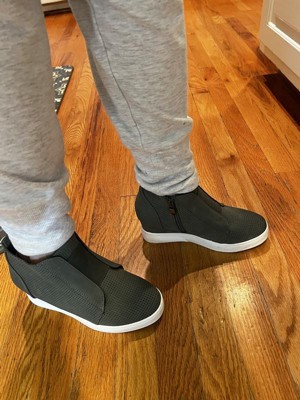 Journee Collection Women's Clara Round Toe Inside Zip Wedge Sneakers Bone 9