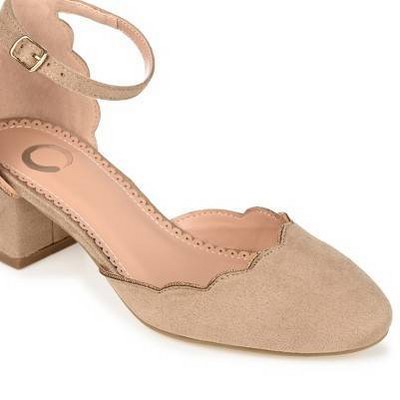 Add some vintage flair to your wardrobe with the Edna by Journee Collection. This darling d'Orsay pump is detailed with vegan leather a wide-width footbed padded insole for a comfortable lift. Exquisite details like a slim ankle strap and 1920s-inspired scalloped trim perfect the design. At Journee Collection our pump styles will let you go from a fun night out with the girls to kicking back and relaxing at the end of the night without any trouble.