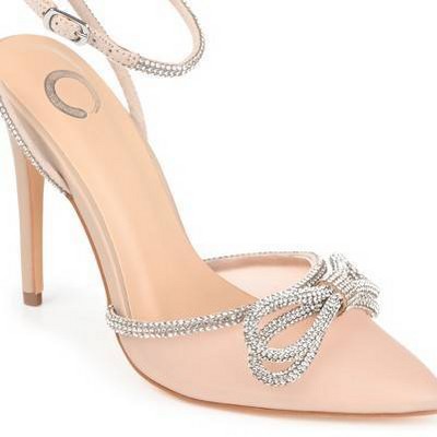 A high-end look that's sure to catch compliments at your next big event. The Gracia by Journee Collection features a padded insole and a foxy stiletto heel for a comfortable lift. Vinyl uppers show off your fresh pedicure and a Rhinestone bow coupled with a sparkling strap adds glamour to the look. At Journee Collection our pump styles will let you go from a fun night out with the girls to kicking back and relaxing at the end of the night without any trouble.
