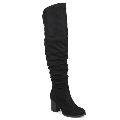 The ruched over-the-knee boots by Journee is constructed with soft faux suede uppers that rise over the knees with raised vamps that create stylish detail. A rounded toe and chunky, stacked high-heels finish the design. At Journee, our boot styles will have your outfit looking even better than before. They will give you that finishing touch that will have your outfit looking straight out of a magazine..