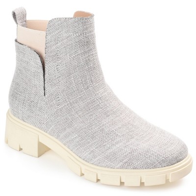 A throwback look that will pair perfectly with your wardrobe favorites the Mirette by Journee Collection. This round-toe bootie features soft vegan leather material with stretch gore panels at the sides for a flexible fit. A 4 mm � insole offers all the support you need and a thick treaded sole adds the perfect amount of grip. At Journee Collection our booties will give you that comfortable yet stylish look perfect for when you�re in the office all the way to a fun night out with the girls.
