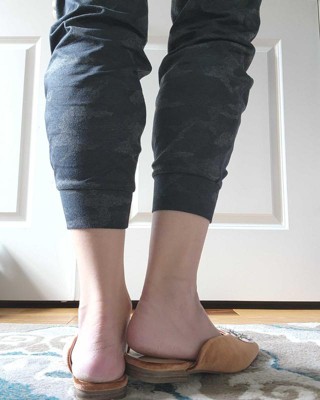 [This review was collected as part of a promotion.] I tried on these flats in size 7 and a half. These shoes are really so beautiful. From the soft, brown velvety exterior to the bedazzled, large buckle, this mule well take your outfit up a notch. Unfortunately, they were not as comfortable as I was hoping. The top of the toe is squared off so that is part of the issue for me. Also, when walking, they were uncomfortable on the top of my foot as well. This item Felt true to size and the width Felt true to width. I received an incentive to write this review.