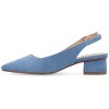 The Sylvia heels from Journee will have you leaving your house comfortable with their padded footbed. Keeping you in the new with fashion their supple vegan leather, sling-back crossover strap design, and pointed toe will do just that. As a bonus, their pull-on closure will make them an easy shoe to put on when leaving the house. Also available in wide width.