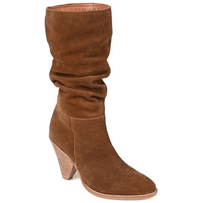 Journee Signature Women's Genuine Leather Rowann Square Toe Stacked Chelsea Booties Brown 12