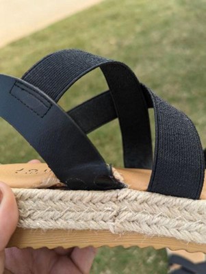 Enjoy the warm weather in the Caroline by Journee. This strappy sandal features elastic uppers for a flexible fit and a 7 mm footbed for added support. A walkable sliver wedge heel wrapped in espadrille perfects the design. At Journee, our sandal styles are going to be perfect for any occasion. Whether that be a formal, business, or casual dress, these sandals will be a perfect match.