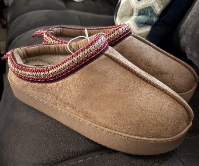 The Connway slip-on women's clog slipper from Journee delivers ultimate comfort with a durable & flexible sole that ensures excellent grip. Each round-toe slipper is lined with soft faux fur, embroidered trim detail, and memory foam for extra coziness. The backless slip-on design enhances comfort, making them ideal for everyday wear. These slippers should be spot-cleaned to maintain their quality.