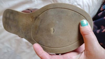 I bought these to wear to church during the summer. I wore them maybe 20 times for a few hours each time and mainly inside. There is metal brace of some kind that broke through the sole. I was disappointed they didn't last longer. At $40 I expected higher quality than $1 per each hour of wear.