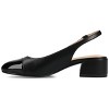 The Sammie block heel from Journee is a stylish slingback with a covered block heel, offering both elegance and comfort. It features a chic two-tone design with a faux patent leather cap-toe and round-toe silhouette, perfect for versatile wear. A cushioned footbed adds extra support, making it ideal for all-day wear while maintaining a polished look. Also available in wide width.