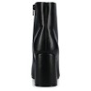 The Kit dress bootie by Journee exudes sophistication with its sleek faux leather construction and elegant pointed-toe design. Featuring a convenient inside zipper, this boot ensures easy wear while maintaining a polished and streamlined look. With a 3-inch block heel and a 4 mm Journee Comfort System Insole, it provides both stylish elevation and lasting comfort for any occasion.