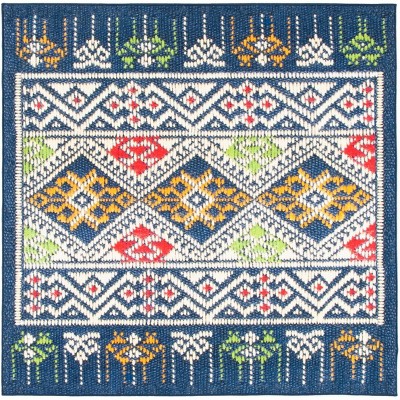 Journey JNY174 Machine Washable Skid-Resistant Power Loomed Indoor Area Rug - Charcoal/Red - 6'7"x6'7" - Safavieh