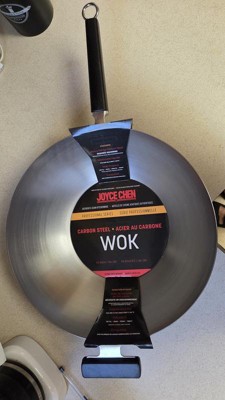 Joyce Chen Professional Series 14-Inch Uncoated Carbon Steel Flat Bottom Wok with Phenolic Handles