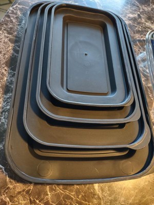 - Air Tight Lids - No More Plastic Wrap! The Snap-In-Place, BPA-Free Plastic lids means you can also use your baking set to deliver and store cooking or leftovers without plastic or foil… or slopping food everywhere! They're also non-slip so you can stack each baking tray on top of each other safely.