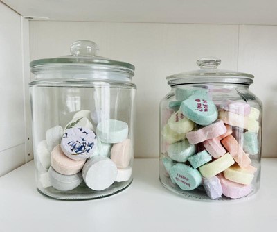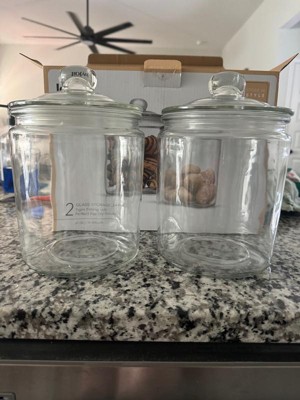 JoyFul Round Glass Cookie Jar with Airtight Lids - 67 oz Candy Jar, Dog Treat Container, Laundry Detergent Container - Set of 2