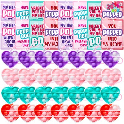 Joyfy 28 Packs Heart Stress Ball with Valentines Day Cards for Kids-Classroom Exchange Gifts, Heart Shape Squishy Toy Stress Relief Fidget Toys