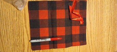 - Festive Designs Christmas Drawstring Bags. The stylish red-and-black plaid design with holiday accents makes every gift look professionally wrapped and extra special under the tree.